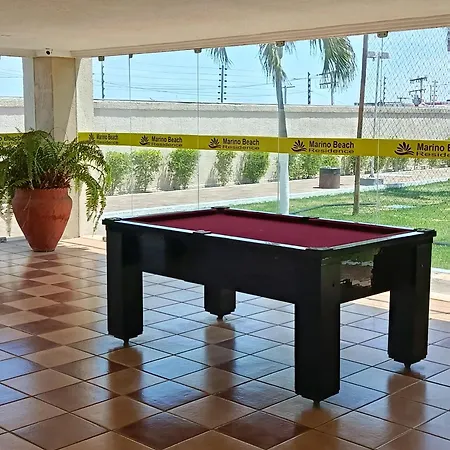 A 15 m^2-es Marino Flat Apartman Aquiraz tengerre néző kilátást nyújt, továbbá vendégeit szaunával kényezteti. A Porto das Dunas partja körülbelül 2 km-re, a Vila Azul do Mar pedig hozzávetőlegesen egy 20 perces sétára van az 1 hálószobás apartmantól.